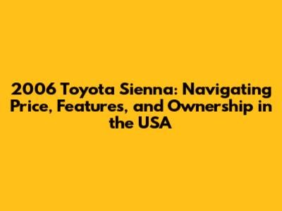 Choosing a 2006 Toyota Sienna can be an excellent decision for anyone needing a reliable, spacious, and family-friendly minivan. By understanding the factors that influence the price of a 2006 Toyota Sienna, researching the market, and taking the necessary steps to inspect and maintain the vehicle, you can make an informed decision and enjoy years of comfortable and dependable driving. Remember to factor in your needs, budget, and the specific condition of the vehicle. Good luck with your search, and happy driving!