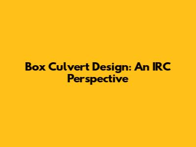 Box Culvert Design: An IRC Perspective