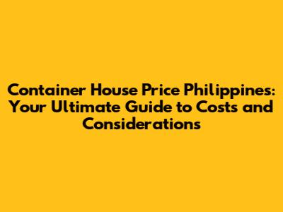 Container House Cost Philippines: A Complete Guide