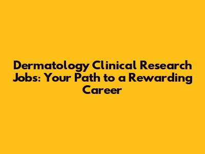 Dermatology Clinical Research Jobs: Your Path To A Rewarding Career