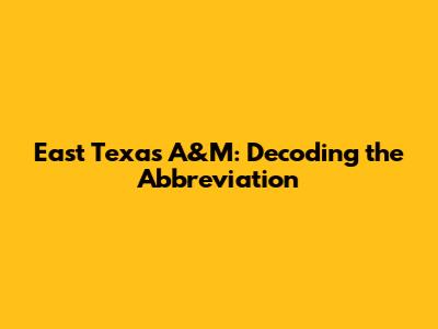 East Texas A&M: Decoding The Abbreviation