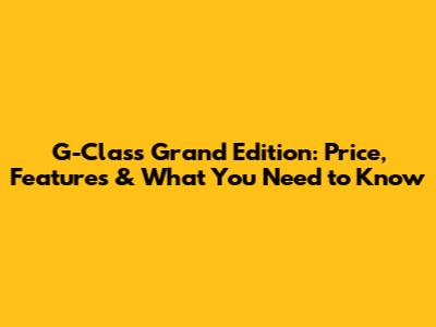 G-Class Grand Edition: Price, Features & What You Need To Know