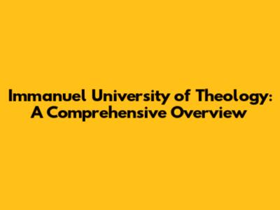 Immanuel University Of Theology: A Comprehensive Overview