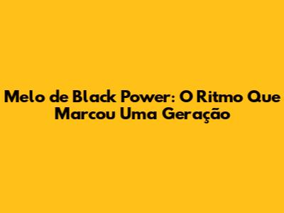 Melo De Black Power: O Ritmo Que Marcou Uma Geração