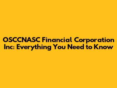 OSCCNASC Financial: All About The Corporation