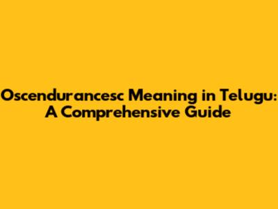 Oscendurancesc Meaning In Telugu: A Comprehensive Guide