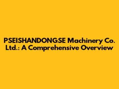 What Exactly Does PSEISHANDONGSE Machinery Co. Ltd. Do?