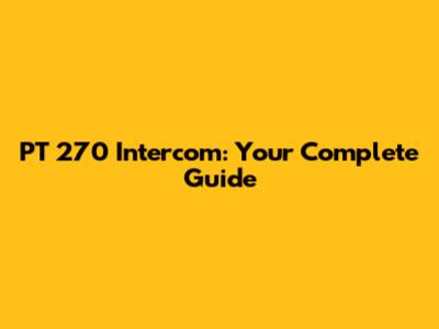 PT 270 Intercom: Your Complete Guide