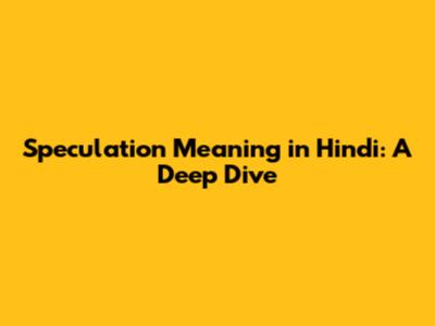 Speculation Meaning in Hindi: Unpacking the Term