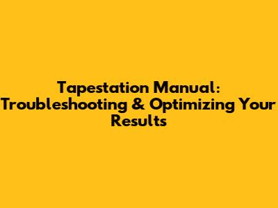 Tapestation Manual: Troubleshooting & Optimizing Your Results