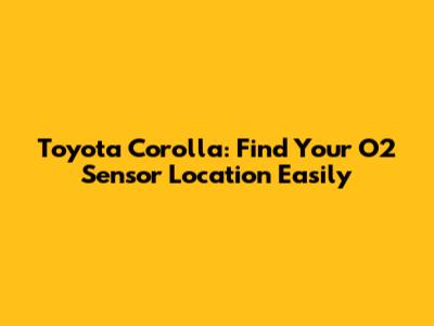 Toyota Corolla: Find Your O2 Sensor Location Easily