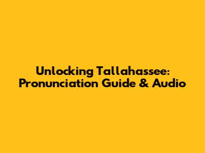 Unlocking Tallahassee: Pronunciation Guide & Audio