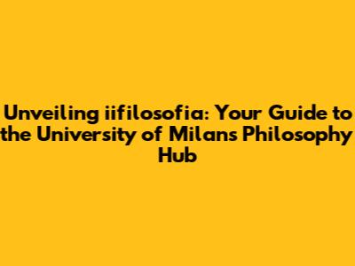 Unveiling Iifilosofia: Your Guide To The University Of Milan's Philosophy Hub