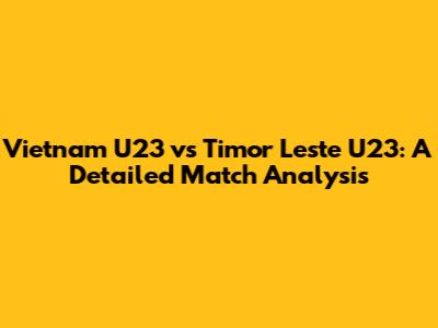 Hey guys! Let's dive deep into the upcoming clash between Vietnam U23 and Timor Leste U23. This match promises to be an interesting one, and we're here to break down everything you need to know. We'll look at team strengths, weaknesses, and what to expect on the field. So, buckle up, because we're about to explore the dynamics of this exciting football encounter. The game between Vietnam U23 and Timor Leste U23 is more than just a match; it's a test of skill, strategy, and sheer determination. Let's see what each team brings to the table and what fans should watch out for. We will analyze their past performances, player stats, and tactical approaches to give you a comprehensive understanding. This is your go-to guide for all things related to this match, so you're in the right place to get the complete scoop.